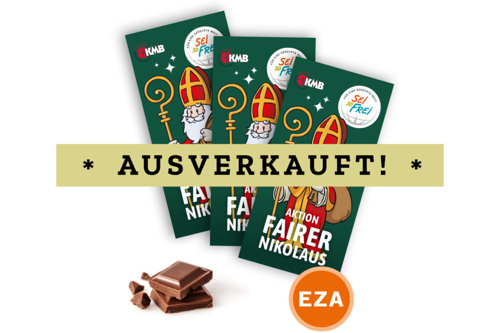 Wir bedanken uns sehr herzlich für Ihr Interesse an unserer Aktion „fairer Nikolaus“! Aufgrund der großen Nachfrage ist unsere Nikolausschokolade bereits zum jetzigen Zeitpunkt vergriffen. Künftigen Bestellungen können wir somit bedauerlicherweise nicht mehr nachkommen.