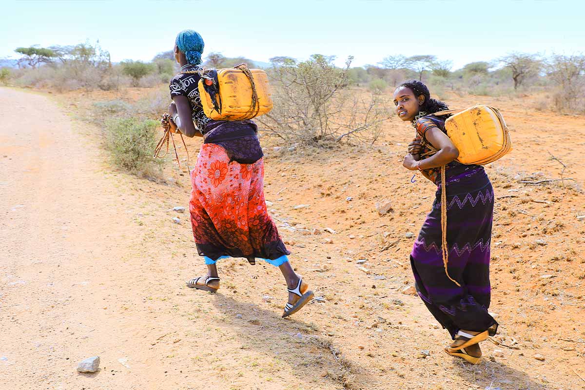 Schon in der zweiten Jahreshälfte 2021 begann die Angst zu wachsen. Die Menschen wie zum Beispiel Nabira wussten, wenn es nicht bald zu regnen beginnt, verdorren die wenigen Pflanzen, die für die Versorgung so wichtigen Nutztiere finden nichts mehr zu essen und der Teufelskreis beginnt. Die Bevölkerung erinnert sich sehr lebendig an das große Leid, das die letzte Dürre mit sich brachte. Allein, aktuell ist es noch viel schlimmer gekommen. Nach Heuschreckenplagen, Corona und zwei Regenzeiten, die ausfielen, hat sich der Regen auch seitdem nicht eingestellt. „Diese Dürre ist weit schlimmer als die vorherigen. Und wir wissen immer noch nicht, wie lange sie dauern wird. Die Rinder sterben und die Ziegen geben kaum mehr Milch. Wir haben große Angst“, sagt Nabira. Sie ist 48 Jahre alt und hat elf Kinder. Normalerweise geht sie jeden Morgen vier Stunden zu Fuß, um Wasser zu holen. Aber jetzt gibt es keines mehr. Bereits zu Beginn des Jahres waren die meisten Kinder und Familien auf Nothilfe-Lieferungen angewiesen. Der Fokus dabei war die Versorgung von schwangeren und stillenden Frauen mit Öl, Mehl und Wasser. Kinder bekommen nahrhafte Erdnusspaste in Säckchen, die gut sättigt. Darüber hinaus ist Heu für die Ziegen und Rinder ein wichtiges Hilfsgut, um das so wichtige Vieh vor dem raschen Tod zu bewahren.