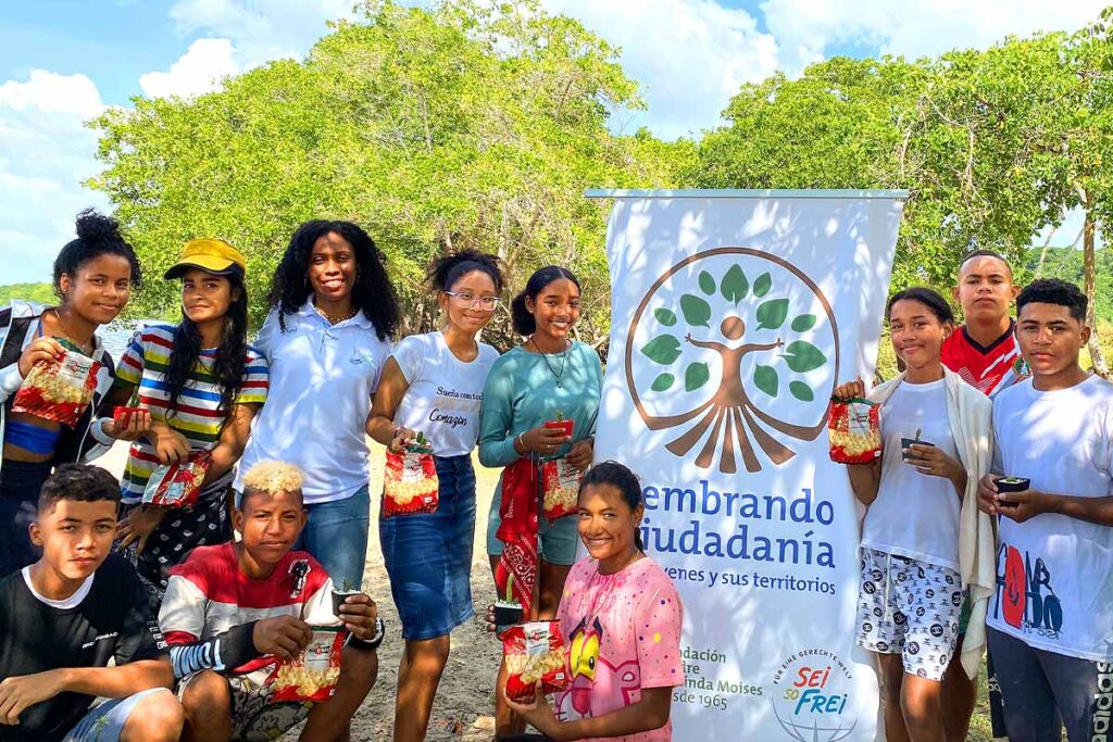 Hinter diesem Projekt steht das Lebenswerk von Maria Herlinde Moises, Franziskanerschwester aus Salzburg, welche aufgrund ihres Einsatzes für die Menschen in Kolumbien noch heute – lange nach ihrem Tod – als „Heilige der Bucht von Cartagena“ verehrt wird. Der Name „Sembrando Ciudadanía“ steht dabei für Mitverantwortung, Demokratie und Gemeinschaft. Werte, die Maria Herlinde Moises wichtig waren, als sie in den  50er-Jahren aus ihrer Heimat Österreich nach Kolumbien ging. In Pasacaballos, damals noch ein Fischerdorf, gründete sie die heute nach ihr benannte Stiftung „Madre Herlinda Moises“, um für die Menschen vor Ort Perspektiven zu schaffen. Vorwiegend Menschen indigener und afrokolumbianischer Herkunft lebten und leben dort immer noch als Minderheiten unter teils dramatischen Bedingungen. Für diese Menschen entstanden durch entschlossene Landbesetzungen von Herlinde Moises und ihrem Team Dörfer, Krankenhäuser, Schulen und Kindergärten. Seit über 50 Jahren ist Sei So Frei nun schon wichtiger Partner dieser Stiftung. Nicht weil sich seither nichts getan hätte, sondern gerade weil sich die Zeiten geändert haben.
